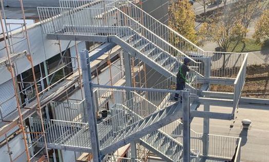 Wir ermöglichen die Erweiterung der Rettungswege für Engie Deutschland in Freiburg. Wir lieferten die neuen Flucht-Türelemente sowie einen entsprechenden Treppenturm mit ein Gesamtgewicht von ca. 30 Tonnen