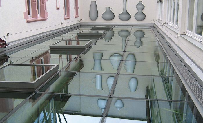 Glasdach im Atrium Abmessung: 36,00 mtr. x 15 mtr.