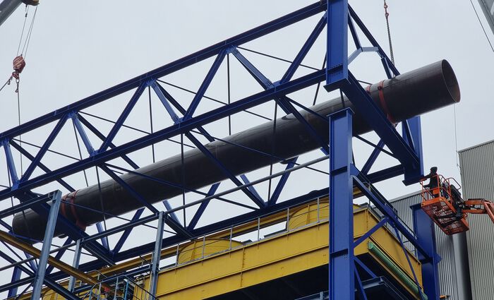 35 m lange Rohren mit jeweils ein Gewicht von 35 Tonnen, bestehend aus 3 zusammengeschraubten Einzelteilen wurden in 3 Tagen montiert.